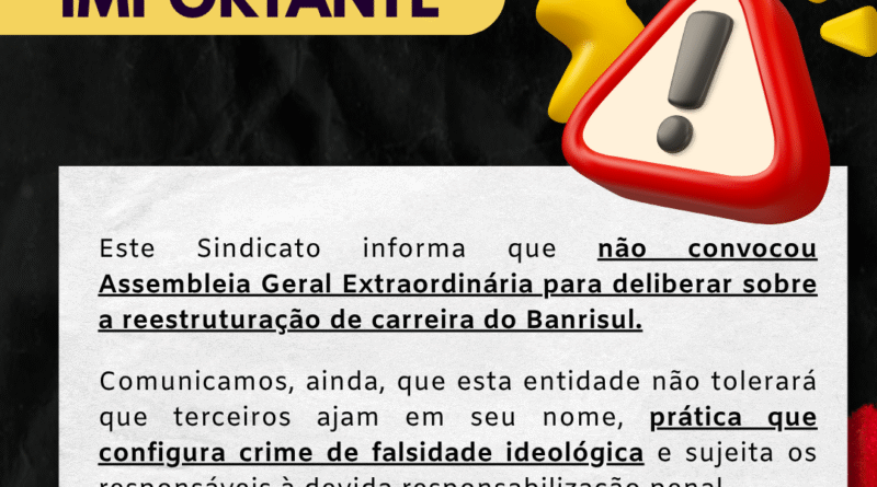 Read MoreEDITAL DE CONVOCAÇÃO ASSEMBLEIA GERAL EXTRAORDINÁRIA Empregados do Banrisul – Acordo Coletivo de Trabalho – 2026/2027 PPR O SINDICATO DOS